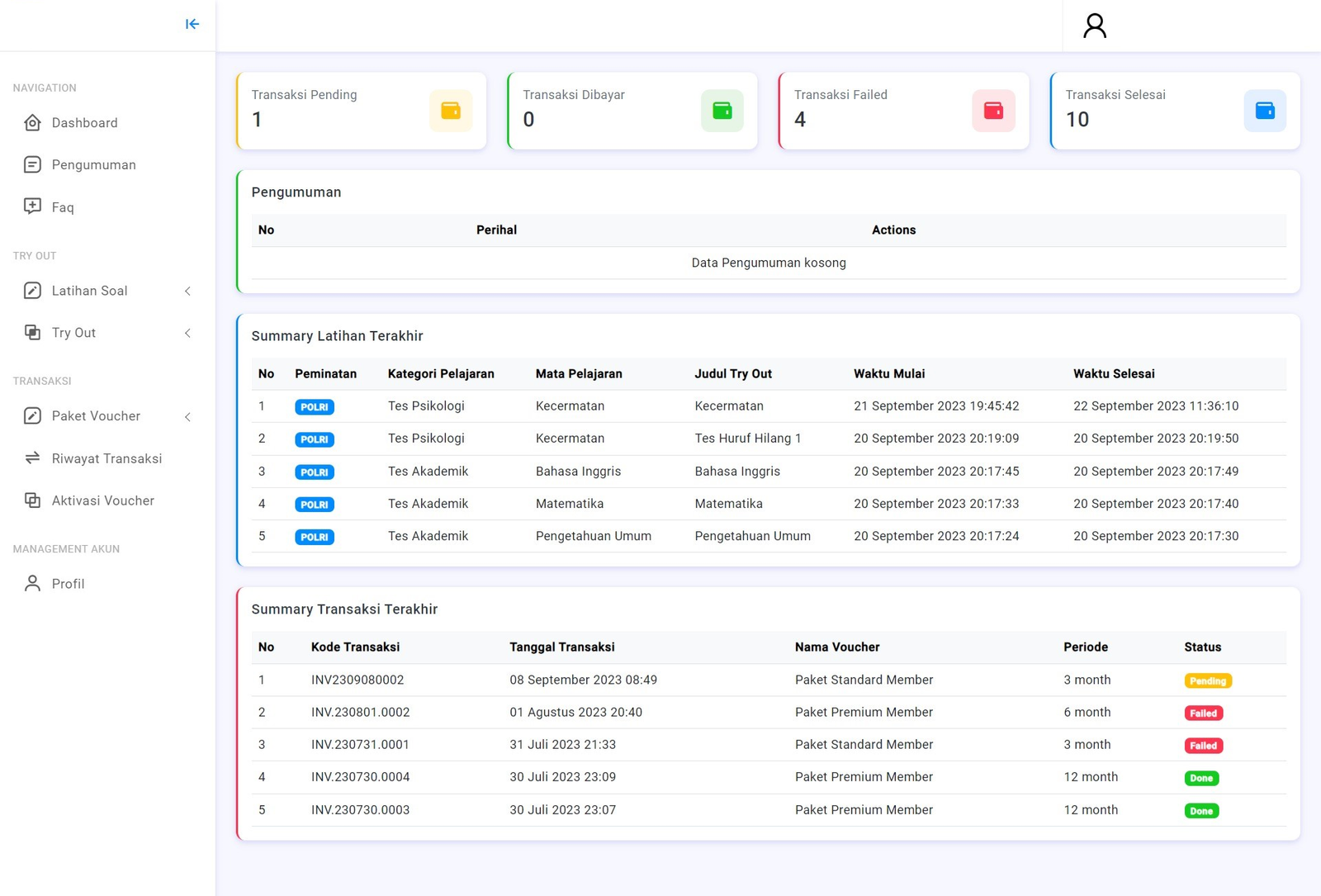Membantu casis POLRI, TNI, CPNS dan Kedinasan dalam berlatih agar lebih siap menghadapi tes yang sebenarnya